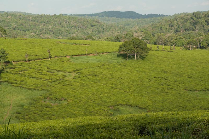 Zmierzamy dalej na południe: gorące źródła i kąpiel w ryftowym Jeziorze Alberta, Hoima przy blasku świec i lamp naftowych. Wreszcie Fort Portal z widokiem na coraz to wyższe szczyty Gór Księżycowych oraz Park Narodowy Kibale, gdzie wybieramy się tropić szympansy w ich naturalnym środowisku. Żyje tu blisko 1200 naczelnych i praktycznie nie zdarza się ich nie zobaczyć, jednak nam pogoda bardzo nie sprzyja. Tropikalny deszcz zgasił nam egzotycznie pachnące ognisko i wcale nie zamierzał przestać padać o poranku. Ociekając strugami wody zagłębiamy się jednak w puszczę. Niestety deszcz zagłusza dźwięki dżungli, a poza tym szympansy nie lubią moknąć. Bezskutecznie krążymy po lesie, aż do popołudnia. Na szczęście wypogadza się i wreszcie trafiamy na małpią rodzinkę. Kilka osobników, nie zważając na naszą obecność, przechadza się po leśnym runie, poszukując smakowitych gąsienic. Idziemy za nimi krok w krok, aż w końcu dołączają do swojej gromady, żerującej w koronie potężnego, kilkudziesięciometrowego drzewa figowego. Obserwujemy naszych wyluzowanych krewniaków podczas ich dnia powszedniego. Wrażenia fantastyczne…
