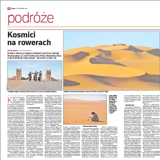 Obszerny tekst Piotra Szymaniaka w piątkowym, magazynowym wydaniu „Życia Warszawy” pod wiele mówiącym tytułem „Kosmici na rowerach”.