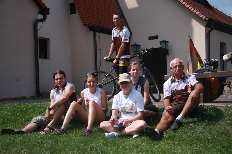 Dziś jazda była wyjątkową przyjemnością – a to zrobiliśmy 30km, nawet tego nie zauważając, a to rozłożyliśmy się na trawie z lodami, a to śpiewaliśmy wszystkie wakacyjno-kolonijne przeboje, jakie znaliśmy. Istna sielanka! Podróż w towarzystwie rozdrażewskich dziewczyn była prawdziwymi wakacjami w całym tego słowa znaczeniu, z pachnącym świeżo ściętym zbożem, z fajnymi zjazdami z górki, w pełnym słoneczku i w super humorach. Mamy nadzieję, że tak samo one myślą o nas.