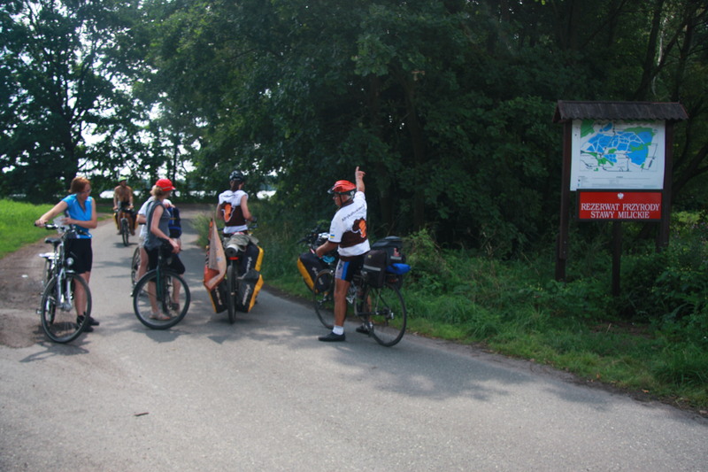 Tego dnia nakręciliśmy najwięcej kilometrów jak do tej pory, liczniki przekroczyły 90km. Oczywiście nie jechaliśmy do Wioski najkrótszą drogą, zahaczyliśmy o rezerwat przyrody Stawy Milickie i tak pomiędzy jeziorami, wśród kumkania, kwilenia, treli i pisków (nie naszych), cykaliśmy kolejne kilometry. Niestety tuż za stawami odłączył się od nas Sławek, ale nic straconego, widzimy się z nim na Ukrainie!.