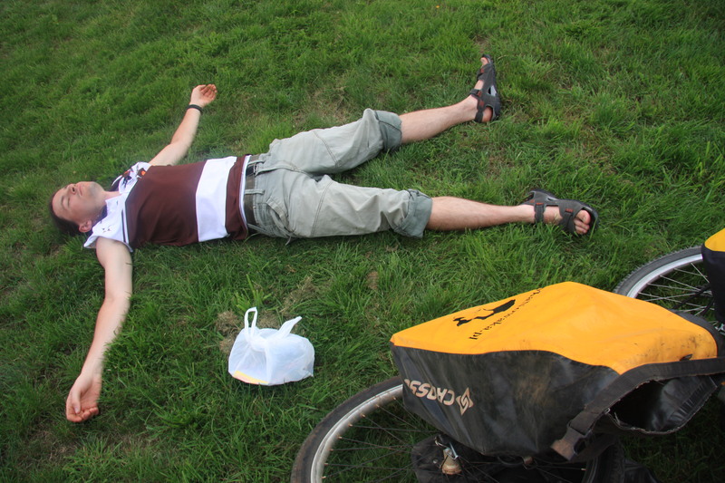 Nowakiem zarażamy oczywiście też po drodze, nie tylko w miejscach postoju, udało nam się jedną książkę sprzedać pod sklepem gdzie kupowaliśmy wodę – pan, który ją kupił miał super lekki (6kg) rower szosowy, wydanie szóste „Rowerem i pieszo…” musiało go dociążyć jak nigdy.