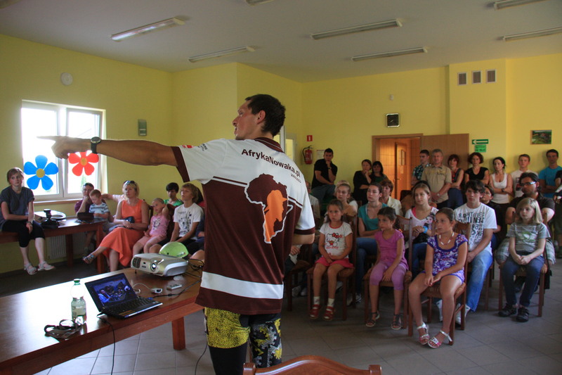 Rozdrażew wspominamy doskonale. Pani Alicja, bibliotekarka z miasteczka, ugościła nas na nowiuteńkiej hali gimnastycznej (Sławek oczywiście zaraz wspiął się na linie pod sam sufit). I, ta-dam!, były prysznice! Tu po nocy dojechał też Piotrek Romejko, a pokaz o RPA prowadziła Eliza. Przy okazji chcielibyśmy Wam polecić nowo otwartą pizzerię w Rozdrażewie, serwują naprawdę świetne drożdże zaklęte w okrągły placek.