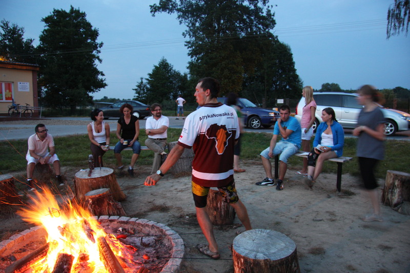 Piorunujące wrażenie zrobiła na nas Wioska. Jeśli myślicie, że Wioska jest wioską – pomyślcie jeszcze raz. To super okolica, z pięknymi willami, bmw w każdym garażu zamiast kombajnów, gdzie mieszkają na przykład zoopsycholodzy (patrz Irek, sołtys), a nie rolnicy. My zostaliśmy ugoszczeni nie tylko kiełbaskami przy ognisku, ale również kilkoma rodzajami ciast, własnoręcznego wyrobu pana cukiernika, sąsiada sołtysa. Zdjęciami i opowieściami z Egiptu dzielił się dziś Piotrek, osób przyszło tyle, że zabrakło miejsc siedzących!