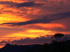 Tego dnia do przejechania zostało nam jeszcze ze 30 km asfaltu, z którego zjechaliśmy na boczną drogę szutrową prowadzącą do Gaub farm. Kilometr od asfaltu rozbiliśmy namioty przy drodze. Kolejny zapierający dech w piersiach zachód słońca – to w Afryce powoli standard. Do ciekawych wydarzeń tego wieczoru można jeszcze zaliczyć wizytę pobliskiego farmera, który zatrzymał się zapytać czy wszystko OK i czy nie potrzebujemy pomocy. Było to miłe, choć argumentacja była dość ciekawa: ‘you don’t see too many white guys camping next to the road’. Nam miejsce jednak bardzo odpowiadało. Popijaliśmy herbatkę przy małym ognisku słuchając grania świerszczy (cykad?) i stukotu kopyt przebiegających nieopodal antylop. I tak oto zakończyliśmy kolejny dzień naszej afrykańskiej przygody.