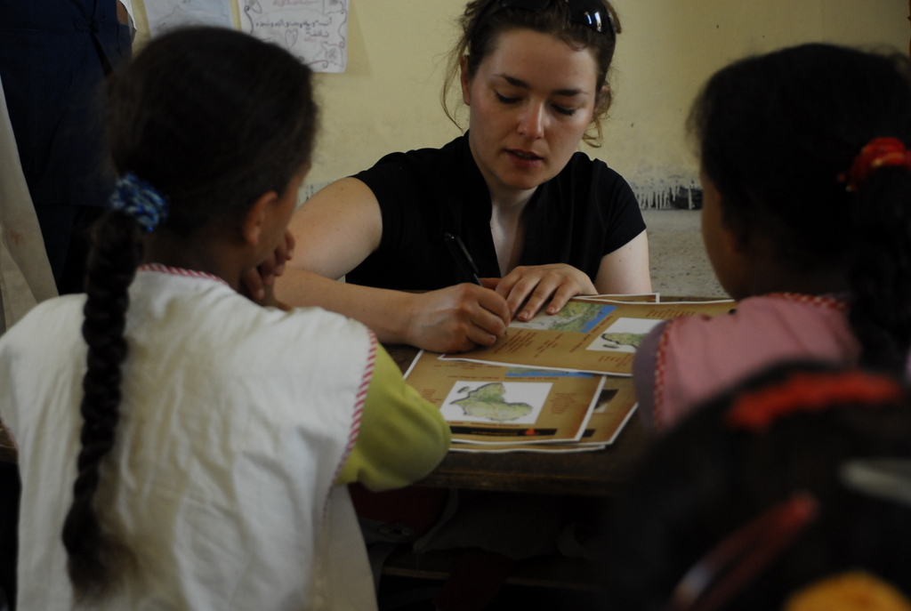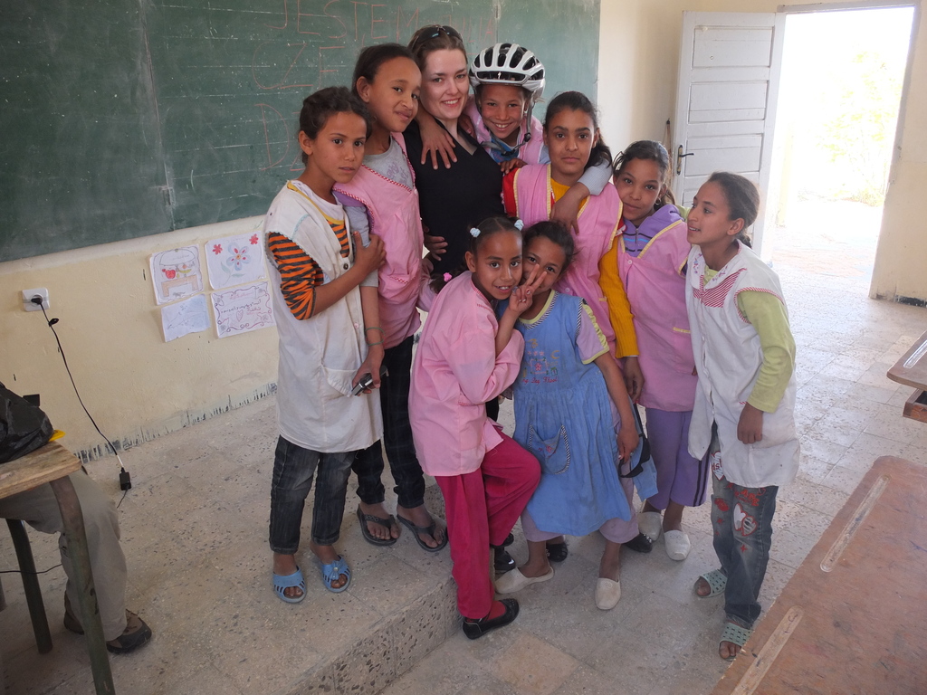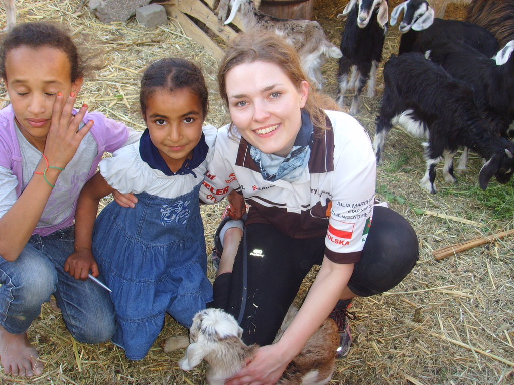 Dwie kolejne noce mieliśmy spędzić na pustyni i akurat to, że ich tam nie spędziliśmy wcale nas już nie zdziwiło. Dotarliśmy do malutkiej wioski El Berd, do której przywieźliśmy „nowakowe” wieści. Chłopaki zaczęli rozbijać obóz na dziedzińcu lokalnej szkoły, a Julia w tym czasie zaoferowała pomoc kobietom w przygotowywaniu kolacji dla przybyszów w jednym z gospodarstw. Pokroiwszy kurczaka na cząstki, została zabrana na spytki przez najstarszą kobietę w domostwie: jesteś panną? mężatką? jakiego wyznania jesteś? skąd pochodzisz? co robisz w Algierii? Rozmowie przysłuchiwał się z tuzin kobiet i panienek. Po chwili rozpoczęła się sesja fotograficzna: zagroda z kozami została wybrana na pierwszy plan zdjęciowy. Kolejnym tłem stało się jedyne drzewko z zieloną koroną. I słodka herbatka w miniaturowych szklaneczkach. Pomimo braku znajomości wspólnego języka żartom i uśmiechom nie było końca – to były najdziwniejsze kalambury w jakich kiedykolwiek brała udział. Od roześmianego stolika co chwilę wstawała jedna z kobiet i rozpoczynała wieczorną modlitwę, by za chwilę wrócić do zabawy. O zmroku Julia wróciła do obozowiska, gdzie podano wyprawową kolację. W towarzystwie „zielonych”, „greenpeace” lub jak kto woli żandarmerii, zasnęliśmy prawie pod gołym niebem.