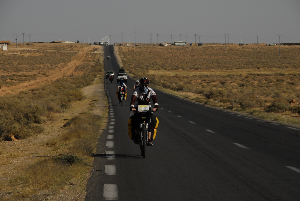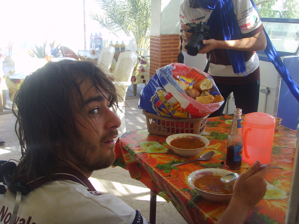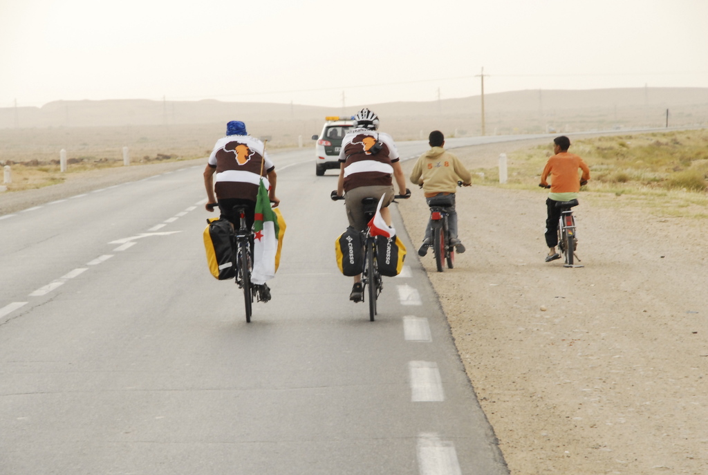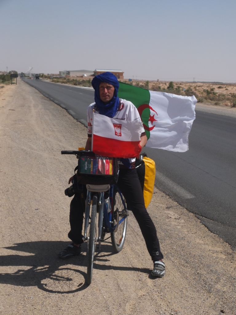 Codziennie zaskakują nas tu nowe sytuacje, i codziennie wiemy, że kolejny dzień przyniesie nowe zaskoczenie, choć to wydaje się już wręcz niemożliwe. A jednak! Pierwszego dnia, ku naszemu nieustającemu zdziwieniu, na trasie z Algieru do Ouargli towarzyszyła nam „sztafetowa” asysta policji – Leszek zliczył 12 zmian patroli! W Ouargli podczas pierwszej kolacji kolejna niespodzianka: pieczony baran, dwudziestka mężczyzn, jedna kobieta i 14-letnie wino w niewielkim pomieszczeniu wykutym w skale. Gołymi rękami rozebrano barana, a kobiecie wybierano co lepsze kąski. Drugi dzień to zaskakujące spotkania z panem Andrzejem, reprezentantem Komisji Europejskiej, który przyjechał do Algierii jako obserwator wyborów parlamentarnych i Jonaszem-Algierczykiem, który śpiewa po polsku piosenki IRA. W międzyczasie dopadła nas ekipa telewizji Canal Algierie, nadającej w arabskich odbiornikach na całym świecie, która zmontowała kilka krótkich wywiadów na temat Nowaka. Pozostałą część intymności w podróży oddaliśmy towarzyszącej nam cały dzień ekipie montującej film dokumentalny na zlecenie algierskiego ministerstwa turystyki… Trzeci dzień to zdziwienie przechodzące w irytację, na wieść, że bez asysty wojskowych nie możemy wyjechać z miasta, i że będą za nami jechać aż do Algieru! W Touggourt zaskoczyły nas reakcje mieszkańców, którzy po obejrzeniu wieczornych wiadomości w Canal Algerie rozpoznawali w nas tych wariatów z Polski, którzy podjęli próbę przejechania rowerami 900 km z pustyni do stolicy. W tym mieście zaskoczył nas też brak standardu w hotelu, w którym nocowaliśmy – wrząca woda płynąca z obu kranów, napełniająca też spłuczki toalet, ale tylko tych które działają. Moglibyśmy tak wymieniać jeszcze długo.