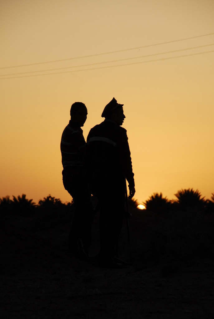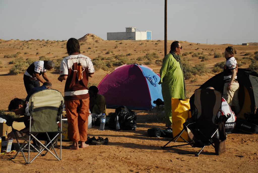 Następną noc spędziliśmy tuż przy plantacji marchewek, gdzie, a jakże by inaczej!, pilnowani byliśmy przez oddział żandarmów, wyposażonych w wóz opancerzony. Ściągnęli go pewnie dlatego, że tego dnia chcieliśmy zmienić ustalony plan by pojechać boczną drogą, wzdłuż wyschniętego solniska (szotta). W wyniku nieporozumienia, prawie udało nam się zgubić „zielonych”, przy udziale nieletniego Algierczyka-anarchisty o pseudonimie ZakoPro, który wskazał nam poszukiwaną drogę, zdaniem żandarmów nieprzejezdną. Grupa „zielonych” nas odnalazła i skończyło się na ostrej wymianie zdań pomiędzy Leszkiem a żandarmami. Zamieszanie było tym większe, że Julia też nie zauważyła, kiedy i gdzie skręciliśmy, i pojechała pierwotną trasą, sądząc, że nas goni. Tylko dlatego męska część ekipy wróciła na pierwotną trasę. I tak dotarliśmy do El Baadj, gdzie jeden jedyny raz nocowaliśmy na otwartym, prawie pustynnym, terenie.