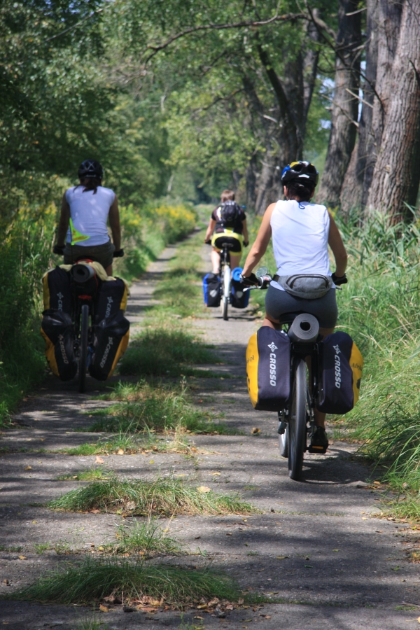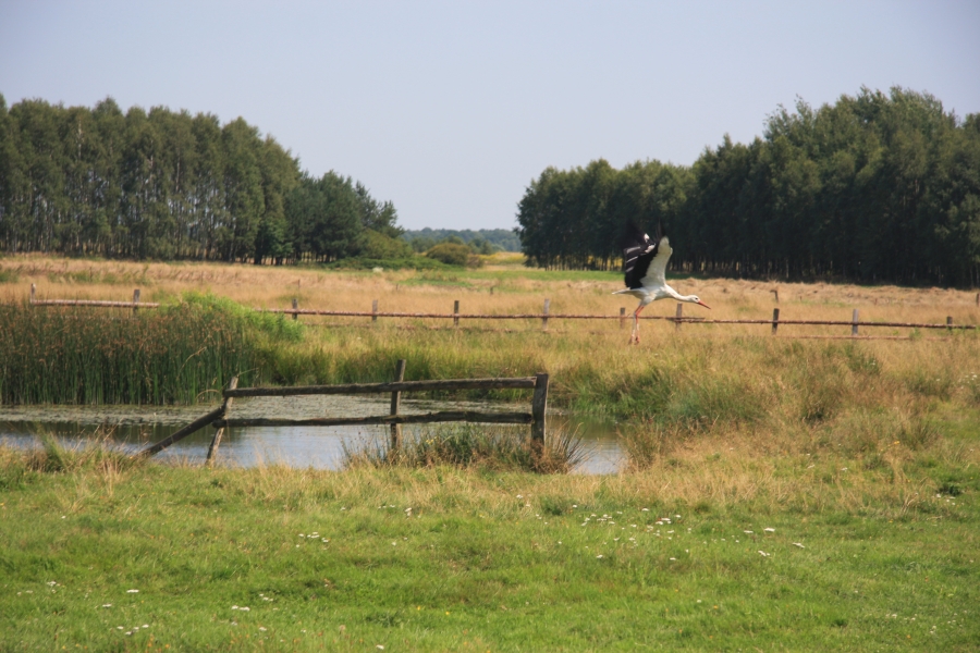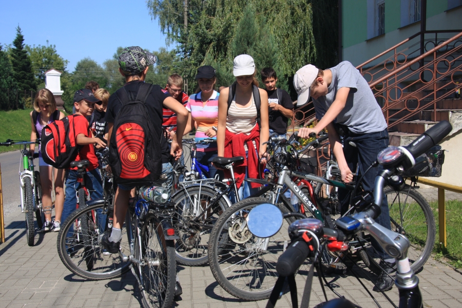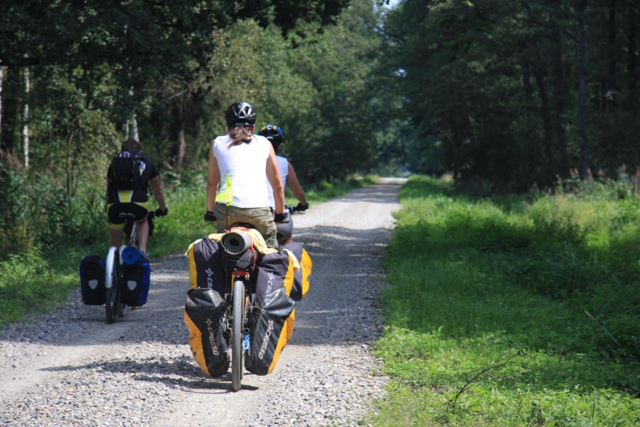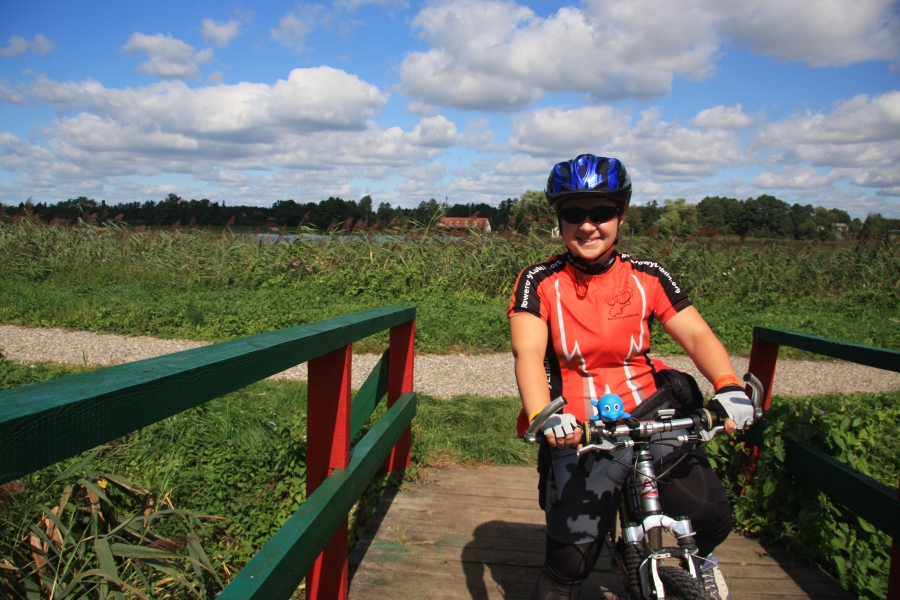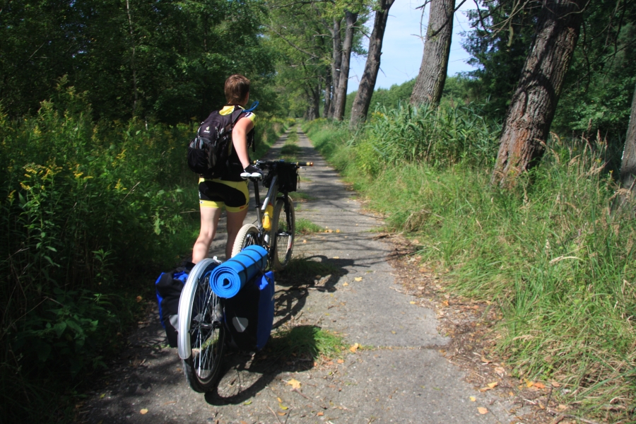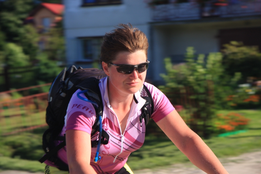 Rano opuścił nas Grzesiek i Kasper, razem pojechali do Rzeszowa, a my dalej, do Zaklikowa. Wybraliśmy trasę, która miała dwa długie fragmenty przez Puszczę Sandomierską. Pierwszy był prosty jak strzała na odcinku kilku kilometrów, utwardzony, komarów było zaledwie kilka – istna sielanka! Mknęliśmy więc wśród borów, gdzieniegdzie było jeziorko z czaplami, czasami polana. Z optymizmem więc skierowaliśmy się prosto na drugi odcinek przez Puszczę. Pierwsze metry od skrętu na skrót przez puszczę nas zupełnie zdezorientowały. Owszem, był piasek i to dużo piasku i trzeba było mozolnie pchać rowery, ale nie takie rzeczy przecież robił Nowak! Gorzej było z tą czarną chmurą na niebie. Nie, to nie nadciągająca, kolejna wakacyjna burza, to dzikie, nieprzebrane hordy komarów zwietrzyły praktycznie niczym nie osłoniętą, w tym upale skórę i niczym na kreskówce ustawiły się w kształt strzałki i zmasowanym atakiem uderzyły. Nie wiadomo było co robić – jechać i uciekać się nie da, biec przez tę pustynię też nie bardzo, a jak się po prostu szło, to mali krwiopijcy szczelnie pokrywali każdy centymetr ciała. A do tego, zupełnie niespodziewanie, momentami Sahara, na jaką trafiliśmy, zamieniała się w dżunglę w Ugandzie z wielkimi bajorami, niechybnie domami tych bezczelnych insektów. Trzeba było podjąć jakąś decyzję. Machając rękami tak, że zasililibyśmy w ekologiczną energię średniej wielkości miasteczko i jednocześnie polewając z wiadra na siebie środki przeciw komarom, zrobiliśmy głosowanie – odwrót czy „nie takie rzeczy robiło się ze szwagrem po pijaku” i brniemy dalej. Wynik: 3 do 1 dla szwagra (przeciw była jedna Kejti, ale nie wykazywała zbytnich oporów przed dalszym zanurzeniem się w jedyne na świecie skrzyżowanie pustyni z tropikalnym lasem deszczowym.